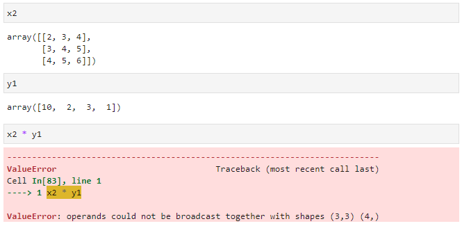 Broadcasting works well only when the shapes of the arrays are compatible. If not, a ValueError is raised as shown above. How does NumPy determine whether they are compatible or not? Here are the general rules.